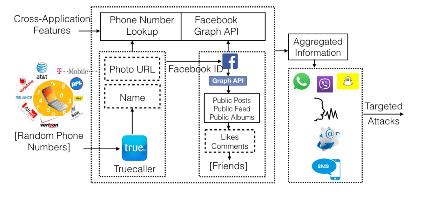 这篇文章思路很简单,现在很多应用都会把手机号码当作登陆,或者用户的ID。作者随机生成手机号码,通过 Truecaller 和其他一些社交网络应用的数据,就可以发起有目标的攻击。简单来说更像是一个自动的“社工”框架,能快速的找到手机号对应的人。