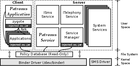 Abstract. Android has a dominating share in the mobile market and there is a significant rise of mobile malware targeting Android devices. Android malware accounted for 97% of all mobile threats in 2013. To protect smartphones and prevent privacy leakage, companies have implemented various host-based intrusion prevention systems (HIPS) on their Android devices. In this paper, we first analyze the implementations, strengths and weaknesses of three popular HIPS architectures. We demonstrate a severe loophole and weakness of an existing popular HIPS product in which hackers can readily exploit. Then we present a design and implementation of a secure and extensible HIPS platform—"Patronus." Patronus not only provides intrusion prevention without the need to modify the Android system, it can also dynamically detect existing malware based on runtime information. We propose a two-phase dynamic detection algorithm for detecting running malware. Our experiments show that Patronus can prevent the intrusive behaviors efficiently and detect malware accurately with a very low performance overhead and power consumption.